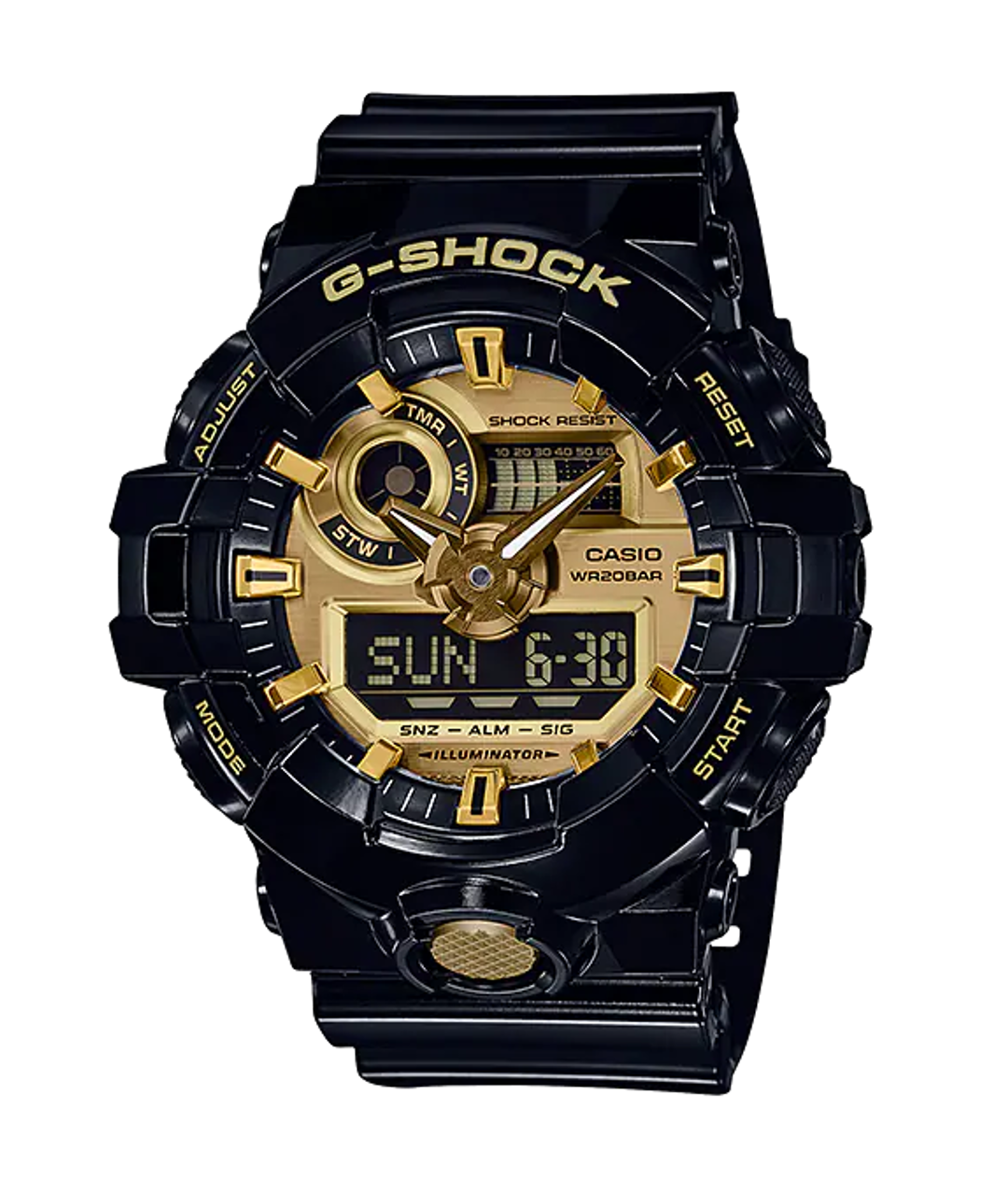 Formato de 12 y 24 horasFunción de movimiento de agujas (las agujas se apartan para proporcionar una visión sin obstrucciones del contenido digital de la pantalla).Funciones clásicas de reloj: Analógica: 2 manecillas (hora, minuto [la manecilla se mueve cada 20 segundos]) Digital: horas, minutos, segundos, p. m., mes, fecha, día