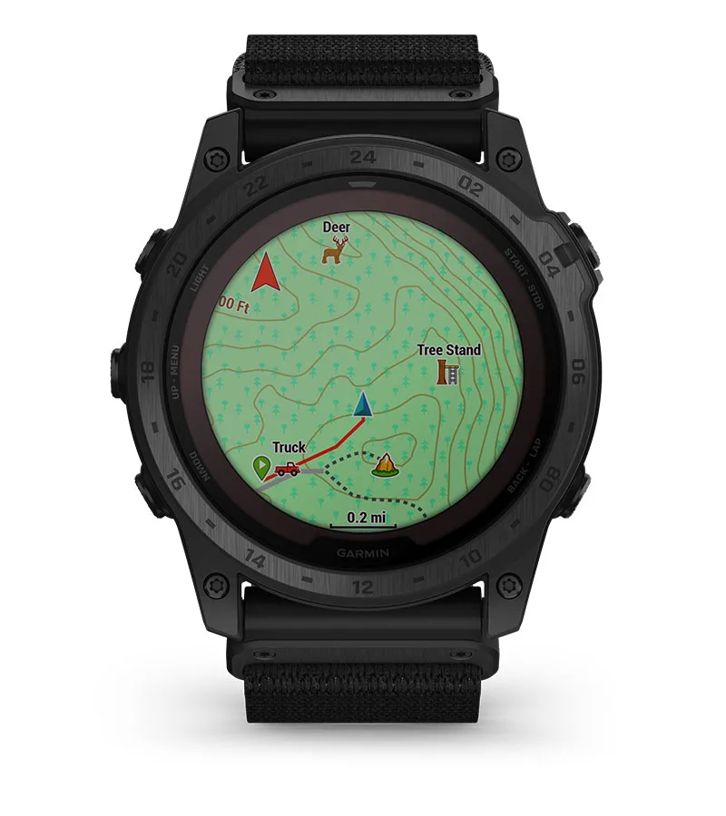 Con una lente de carga solar Power Sapphire  , botones tradicionales y pantalla táctil, este reloj inteligente multideporte con GPS ofrece funciones tácticas especializadas, así como una calculadora Applied Ballistics ® integrada , mapas, música, funciones de entrenamiento avanzadas y más.